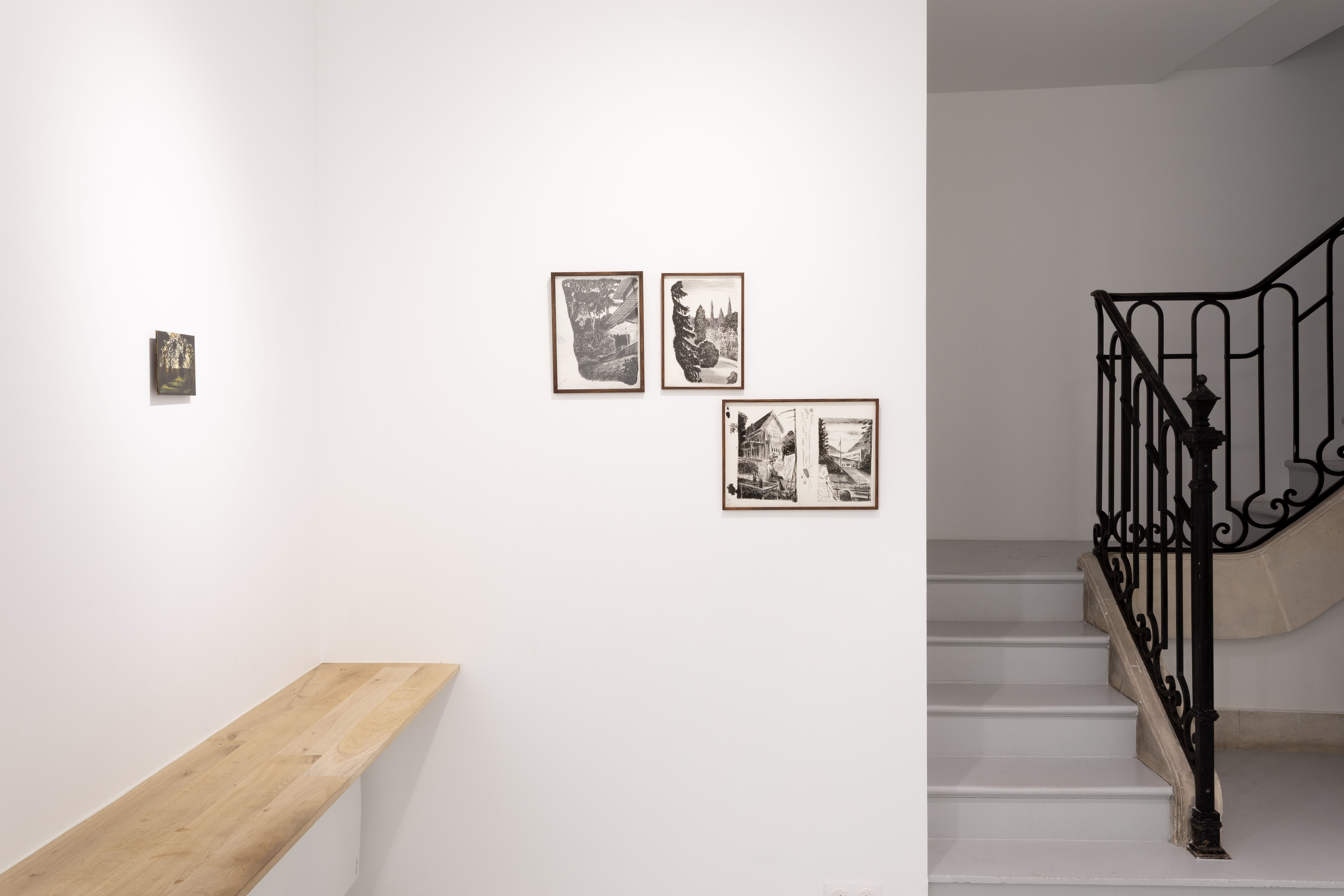 La sérénité qui émane des espaces délicats aux allures minimalistes de cet ancien hôtel particulier, repensés par l’architecte japonaise Mio Shibuya, notamment « la secret room » avec ses angles arrondis, évoquant un sanctuaire, mais aussi l’escalier reliant les deux niveaux, également tout en courbes, a inspiré l’exposition à l’esthétique composite que j’ai imaginée, ici. Elle se veut une célébration des petits moments ordinaires du quotidien en tant qu’instants précieux, et convoque ainsi un certain romantisme désuet.