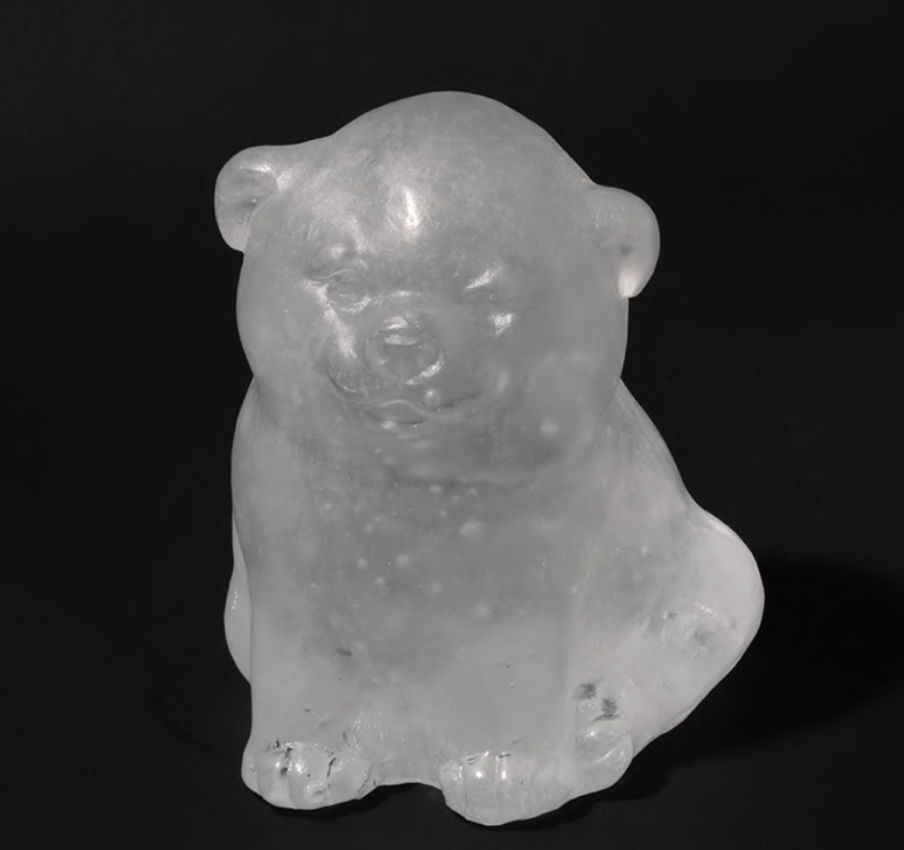 Aiko Miyanaga, “valley of sleeping sea - puppy“, 2023, glass, air (based on a plaster mold by Tozan Miyanaga), 13 x 12 x 15 cm, private collection. ©Miyanaga Aiko, courtesy of Mizuma Art Gallery/Le Clézio Gallery